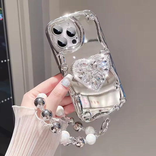 Luxury Silver Plating With Heart Diamond Holder & Pearl Bracelet iPhone Case